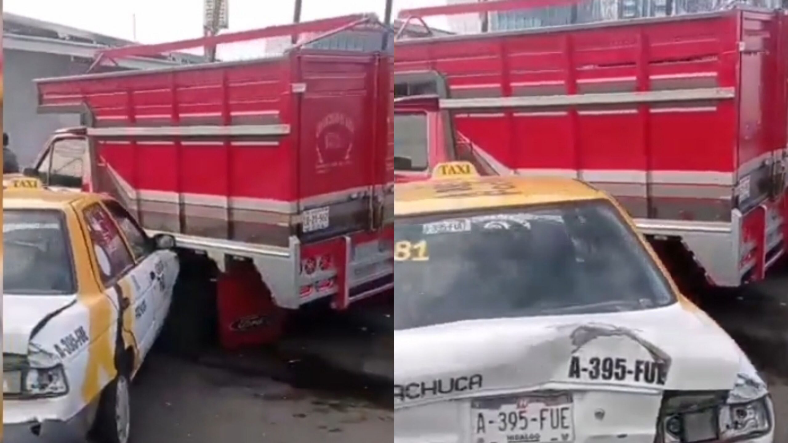 Accidente hoy Pachuca: Trailer impacta a taxi y provoca fuerte choque