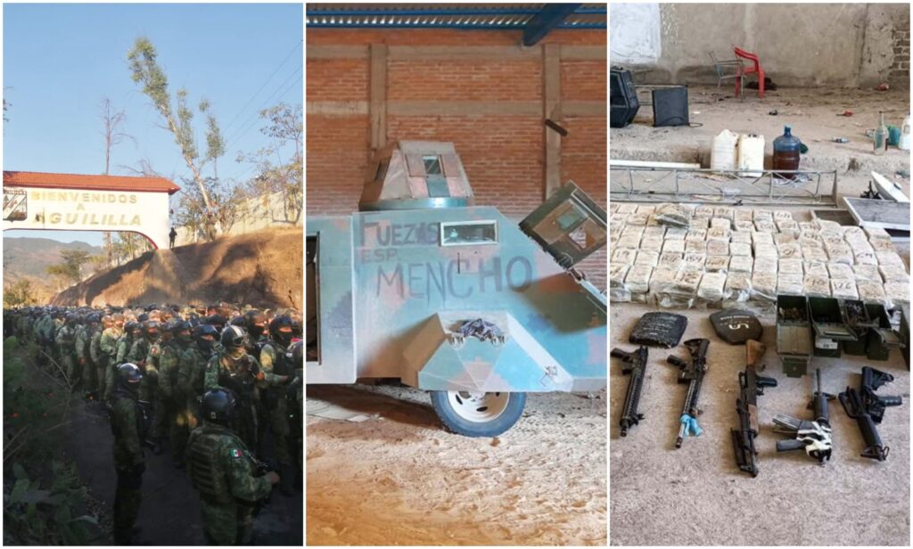 Luego de desplegar cientos de militares y decenas de patrullas en Aguililla, el Ejército encabezó los decomisos de vehículos con blindaje artesanal, armas, más de 150 kilos de droga, así como equipo táctico del Cártel Jalisco Nueva Generación (CJNG).