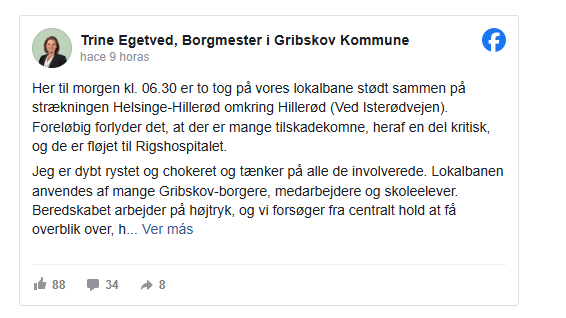 La alcaldesa de Gribskov, Trine Egetved, escribió en un post de Facebook que la línea ferroviaria local es utilizada por muchos residentes de Gribskov, empleados y escolares.