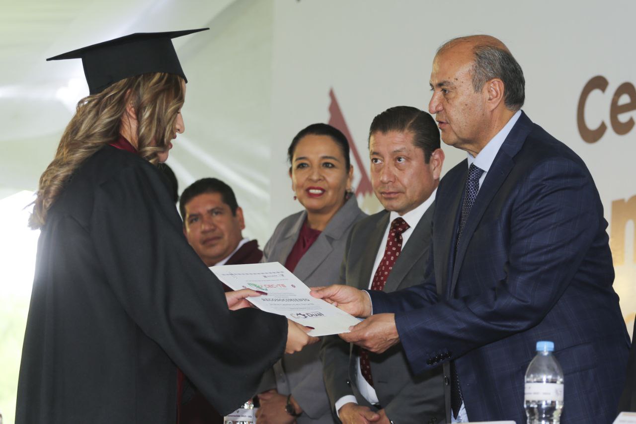 El secretario de Educación Pública de Hidalgo, Natividad Castrejón Valdez, presidió la ceremonia de graduación de 463 estudiantes del Colegio de Estudios Científicos y Tecnológicos del Estado de Hidalgo (CECyTE Hidalgo) Plantel Tetepango, en donde reconoció el esfuerzo de alumnas y alumnos.