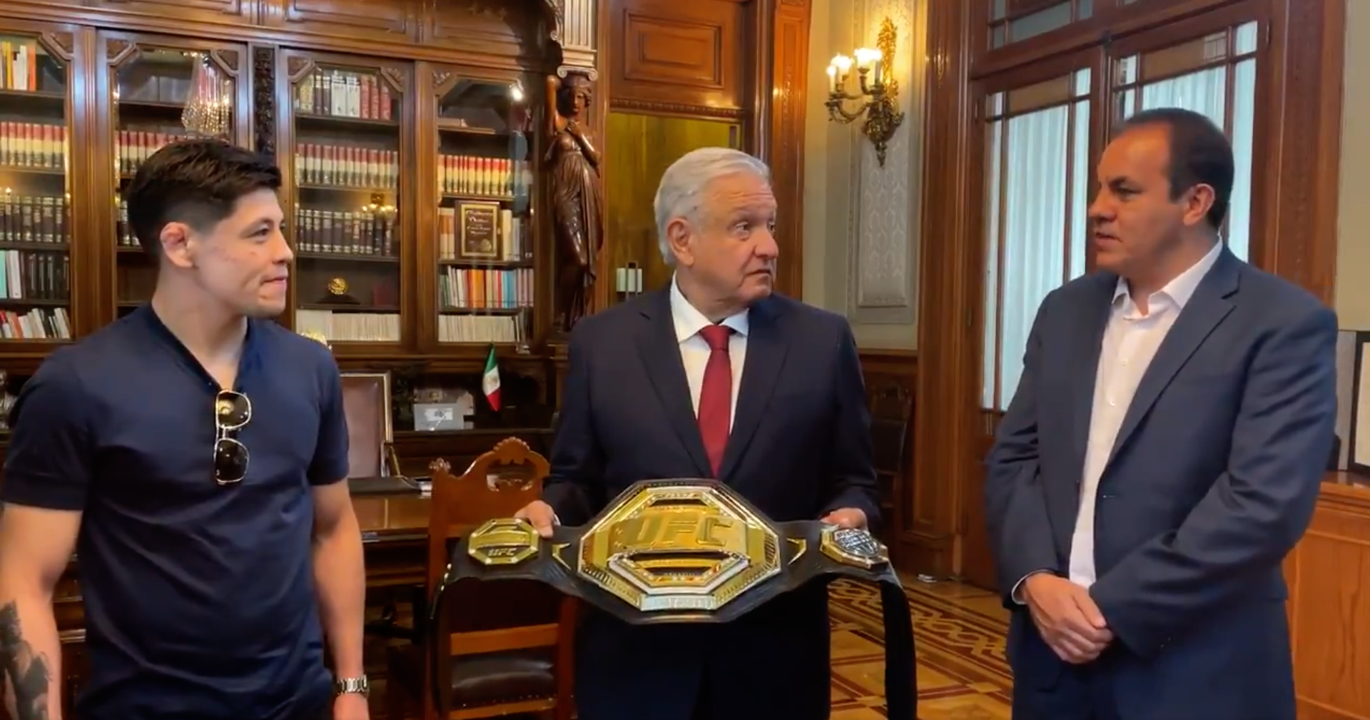 AMLO recibe a Brandon Moreno, campeón de la UFC en Palacio Nacional