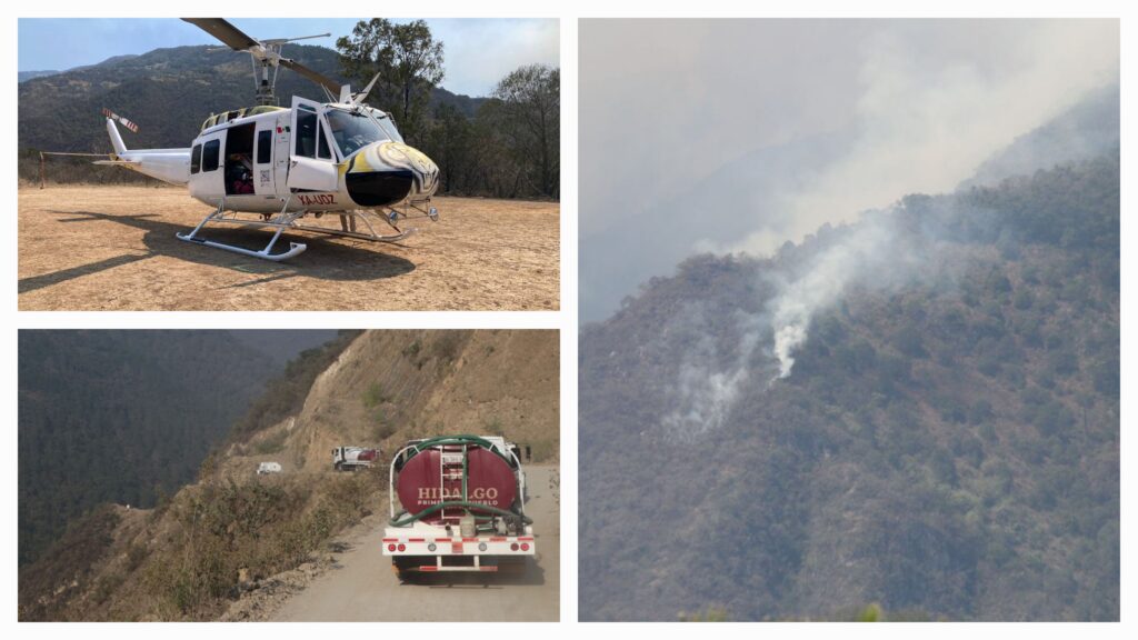 Además, en punto de las 15:30 horas, se sumó al esfuerzo de combate un helicóptero MI 17, proporcionado por la Secretaría de la Defensa Nacional (SEDENA), con una capacidad de carga de 4mil litros de agua.
