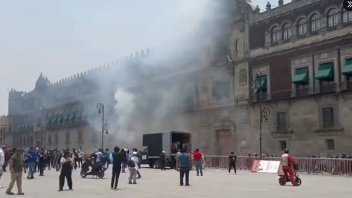 Atacan Palacio Nacional normalistas de Ayotzinapa, 26 policías resultaron heridos