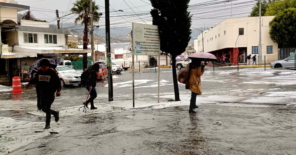 También, se reporta lluvia intensa con presencia de granizo sobre la carretera Pachuca–Tulancingo.