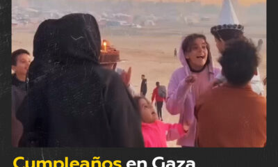Una familia desplazada de la Franja de Gaza celebró el cumpleaños de su hijo pequeño en medio de los ataques aéreos del Ejército de Israel sobre...