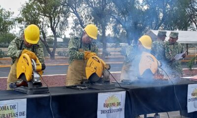 En la 18 zona Militar ubicada en la ciudad de Pachuca personal del 96 Batallón de Infantería destruyó y enterró un total de 43 armas largas,...