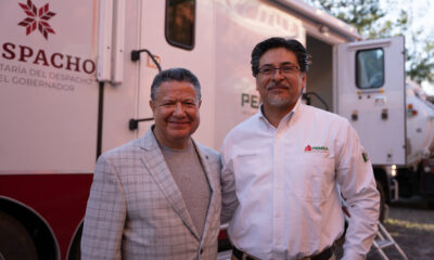 El gobernador de Hidalgo, Julio Menchaca Salazar, recibió de manos de Orlando Camarillo Ruíz, gerente de Responsabilidad Social de Petróleos Mexicanos (Pemex), una unidad médica móvil...