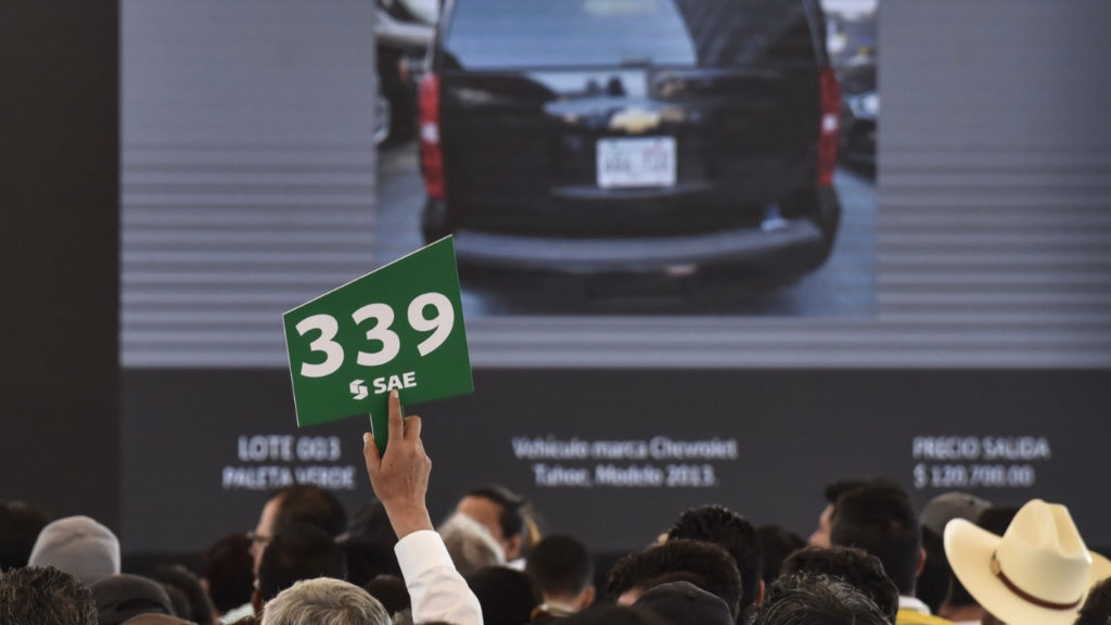 Eran las 12:15 horas cuando salió la primera unidad, minutos después los compradores se «peleaban» con miles de pesos la compra de camionetas y automóviles utilizados en la administración federal pasada. Los pujadores subían una y otra vez el precio de la Tahoe que inició en 120 mil 700 pesos.