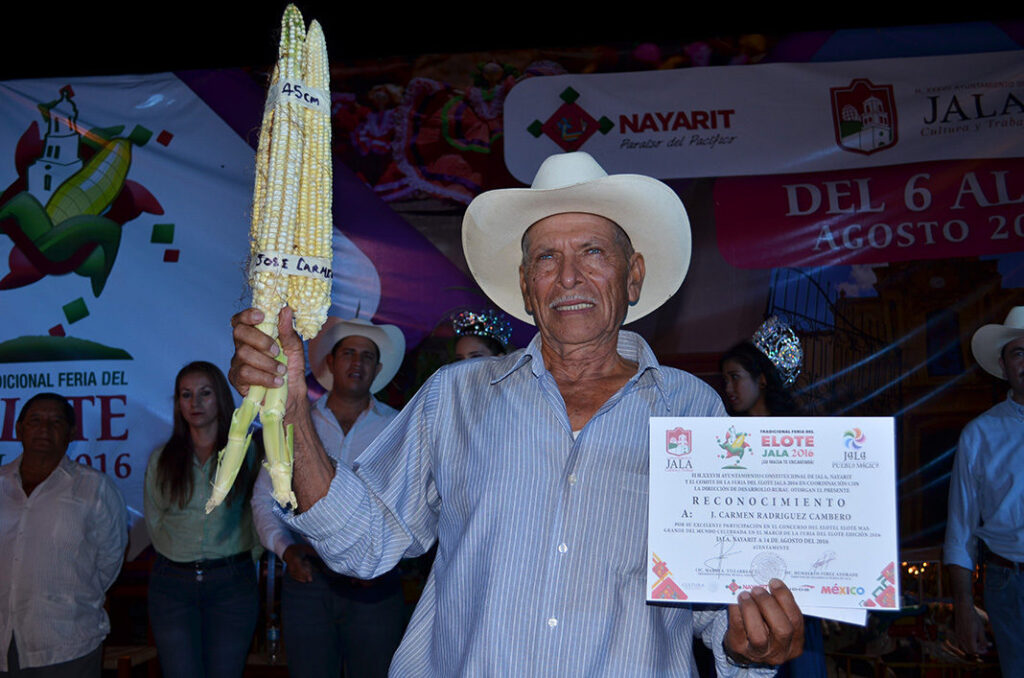 El primer lugar de la XXXVIII edición del Concurso del Elote más Grande se lo llevó una mazorca de 43 centímetros, esto sucedió en el estado mexicano de Nayarit, en el municipio de Jala.