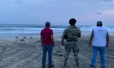 Con motivo de la primera arribada de tortugas marinas al Santuario Playa La Escobilla, Oaxaca, personal de la Procuraduría Federal de Protección al Ambiente y de...