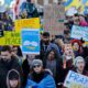 Alrededor de 10.000 personas protestaron el viernes en Berlín contra la invasión rusa de Ucrania, según la policía alemana. La manifestación terminó en la famosa Puerta de Brandemburgo, que...