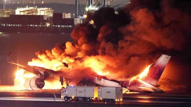 Cinco miembros de la Guardia Costera han fallecido en el choque de su aeronave con un vuelo comercial en un aeropuerto de Tokio choque que produjo un importante incendio que obligó a evacuar a los 379 ocupantes del avión comercial, confirmaron las autoridades japonesas.