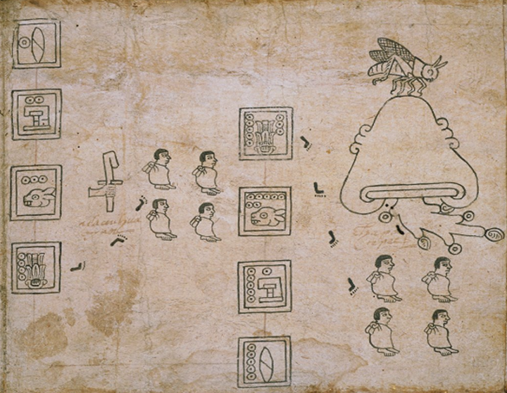 En la entrada número 18 de esta columna hablamos sobre algunos aspectos del códice borbónico, en esta entrada damos continuidad a un acercamiento somero de otro códice esencial: la Tira de la Peregrinación, también conocido como Códice Boturini. Este códice presenta la ruta que siguió el pueblo mexica desde la mítica Aztlán hasta su asentamiento temporal dentro del señorío del Culhuacán al sur del gran Lago de Texcoco. En primer lugar, es importante decir, que varios historiadores y antropólogos especialistas en el tema, consideran que la Tira de la Peregrinación es auténticamente prehispánica. Está elaborado en papel amate de una extensión de 5.40 metros, dividida a su vez en 22 láminas de 19.8 cm x 25.5 cm, pintadas por un solo lado y sin muchos agregados de colores, por lo que su visualización es sobría. Debe su primer nombre, Boturini, porque fue un coleccionista italiano, Lorenzo Boturini Benaduci quien lo mencionó por primera vez, en 1746, en su Catálogo del Museo Indiano. Por muchas vicisitudes el códice vino a México y luego fue llevado a Londres en 1823, por William Bullock, supuestamente para una exposición. En 1825, una buena parte de la colección de Lorenzo Boturini pasó a formar parte del Museo Nacional Mexicano, lugar al que fue devuelto el Códice después de dos años. Lugar que hasta la fecha lo alberga, como parte de la Biblioteca Nacional de Antropología e Historia.