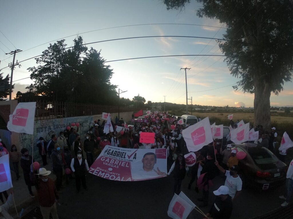 Zempoala, 14 de octubre.- Contundente cierre de campaña de Gabriel Vargas en Zempoala. Unas 600 personas, guardando su sana distancia, acudieron al cierre de campaña del abanderado de Podemos, Gabriel Vargas Godínez, siendo una jornada histórica porque en el acto, se sumaron diversos grupos y personajes a esta candidatura.