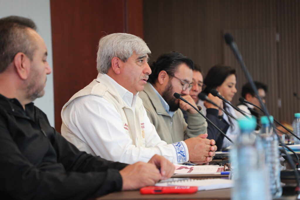 En el encuentro también participaron los secretarios del Trabajo, de Desarrollo Económico y de Infraestructura Pública y Desarrollo Urbano Sostenible, Oscar Javier González, Carlos Henkel Escorza y Alejandro Sánchez García, respectivamente; así como la titular de Medio Ambiente y Recursos Naturales, Mónica Mixtega Trejo; y el delegado de los Programas para el Bienestar en Hidalgo, Abraham Mendoza Zenteno, con quienes se consolidó una ruta común para avanzar en la recuperación de las comunidades dañadas.
