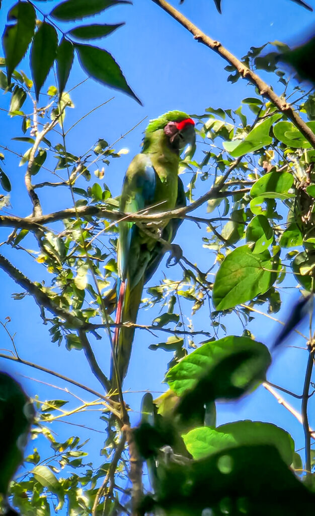 En el lugar, mediante la vigilancia a través de drones, se observaron 50 ejemplares en dos parvadas distintas, una compuesta por 26 guacamayas verdes y otra de 24.