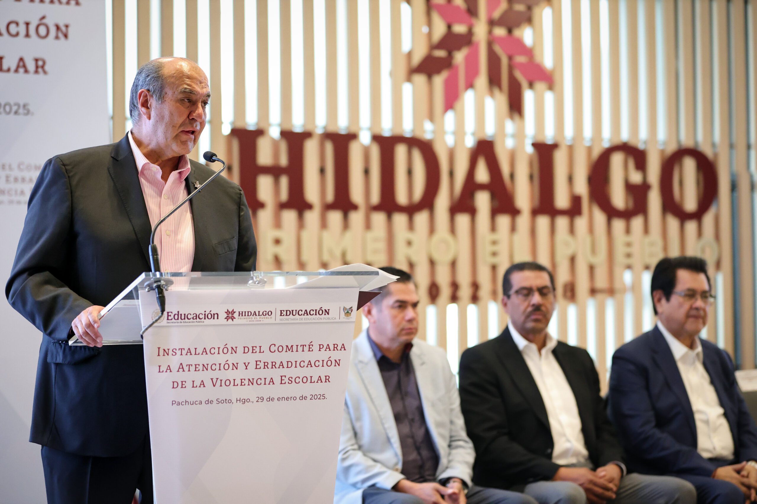 Sobre la instalación del Comité para la Atención y la Erradicación de la Violencia Escolar, está integrado por el gobernador como presidente, el secretario de Educación Pública, como secretario ejecutivo y la persona encargada de la Procuraduría General de Justicia del Estado de Hidalgo (PGJEH), quien realizará funciones como secretario técnico.
