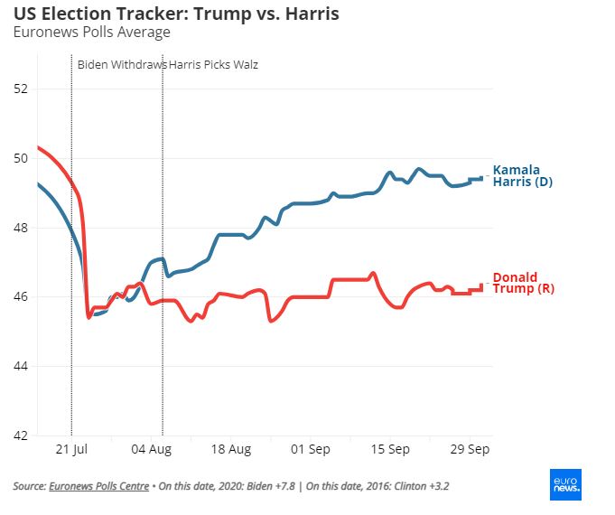 A un mes de las elecciones presidenciales en Estados Unidos, ‘Euronews’ examina y analiza la influencia de las tensiones y el conflicto en Oriente Medio en los votantes estadounidenses.
