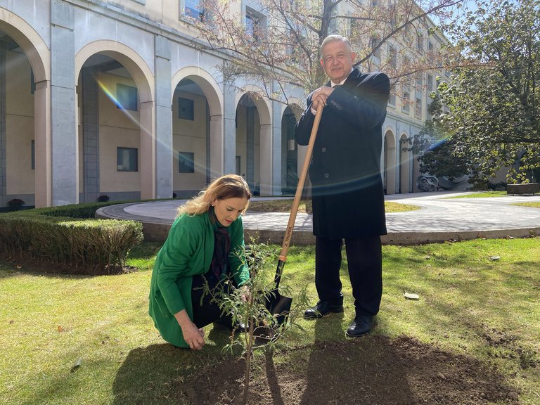 El mandatario dijo que plantar el árbol simboliza el futuro, pensando será mejor para todas las personas de este mundo, sin hacer distinciones de clase, nacionalidad o cualquier otro motivo político.