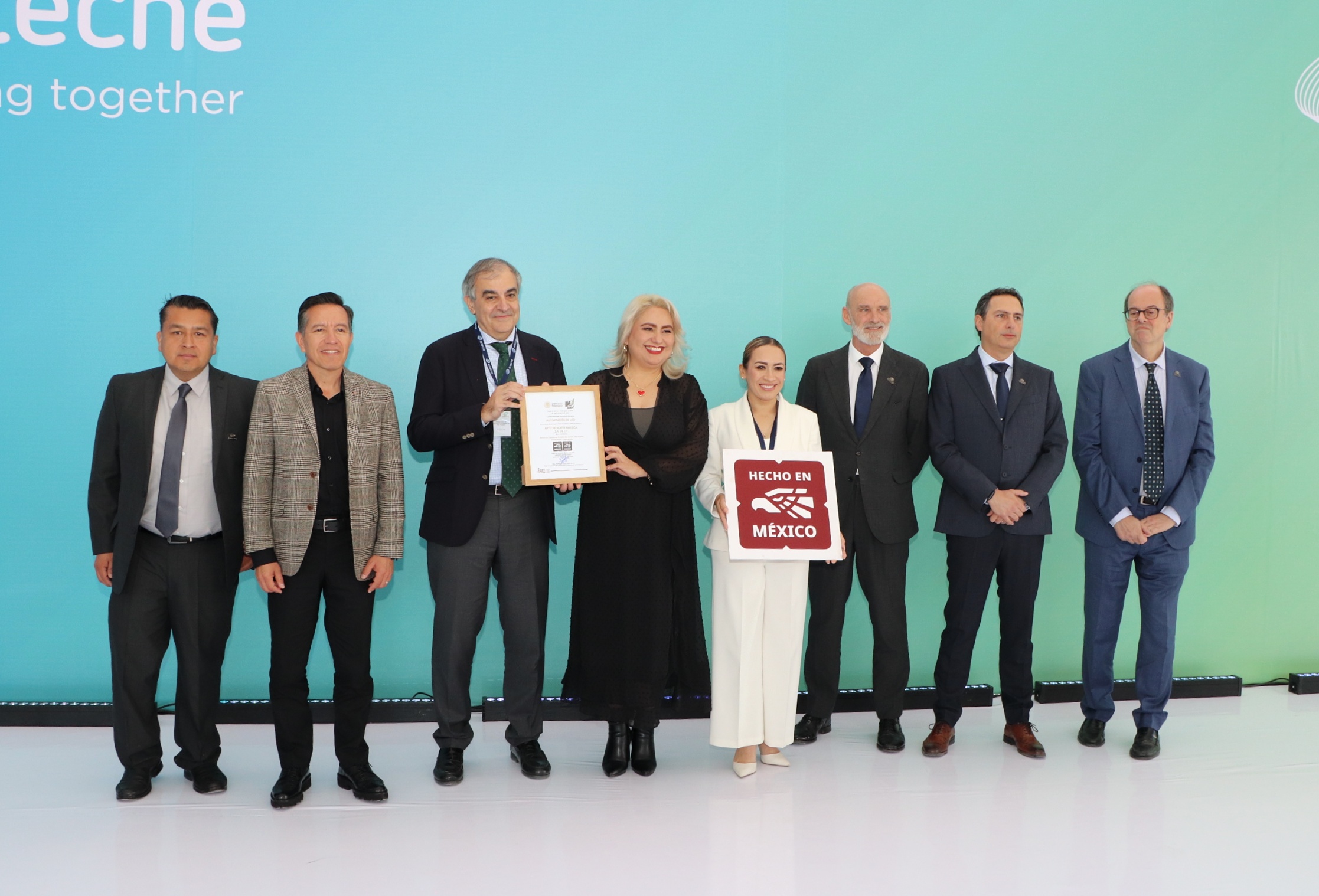 Durante el evento, Diana León Cuadra, titular del Sector de Energía de la Secretaría de Economía federal, entregó simbólicamente a Arteche el certificado ‘Hecho en México’, que reconoce su compromiso con la calidad, responsabilidad e innovación tecnológica.