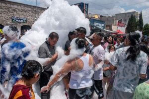 En Apan cambiaron mojada por fiesta de espuma. Para terminar con el gran desperdicio de agua que se daba durante el Sábado de Gloria, este municipio realizó la Feria de la Espuma, que resultó un evento innovador y desde luego ahorrador de agua.