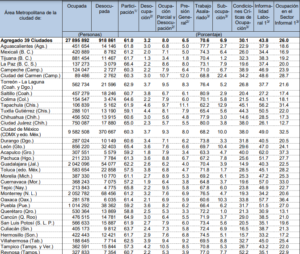 Además, el informe indica que, de 211 mil 233 ciudadanos, el 8.8 % se encuentra en una ocupación parcial y desocupación; el 67.2 % en un trabajo asalariado; el 25.6 % en condiciones laborales criticas y el 27.7 en el sector informal.