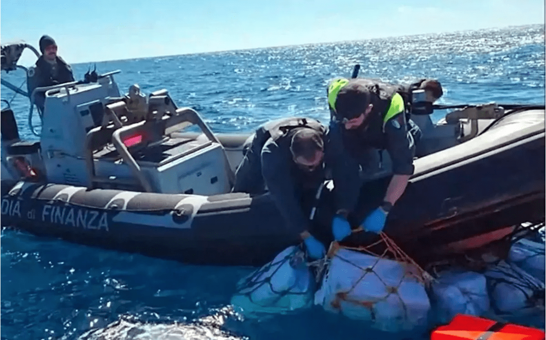 «La droga probablemente fuera arrojada al mar por un carguero para que fuera recuperada sucesivamente y transportada al continente», dijo la Policía, informó la agencia de noticias AFP.