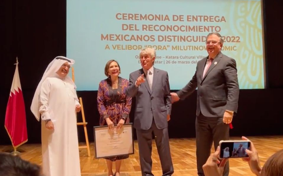 Ante la mirada de los asistentes, y en compañía de la embajadora de México en Qatar, Graciela Márquez García, el exjefe de gobierno de la Ciudad de México entregó a Milutinovic una medalla de plata y un diploma expedido por la SRE a través de la embajadas y consulados alrededor del mundo. De acuerdo con la dependencia federal, el reconocimiento se entrega: