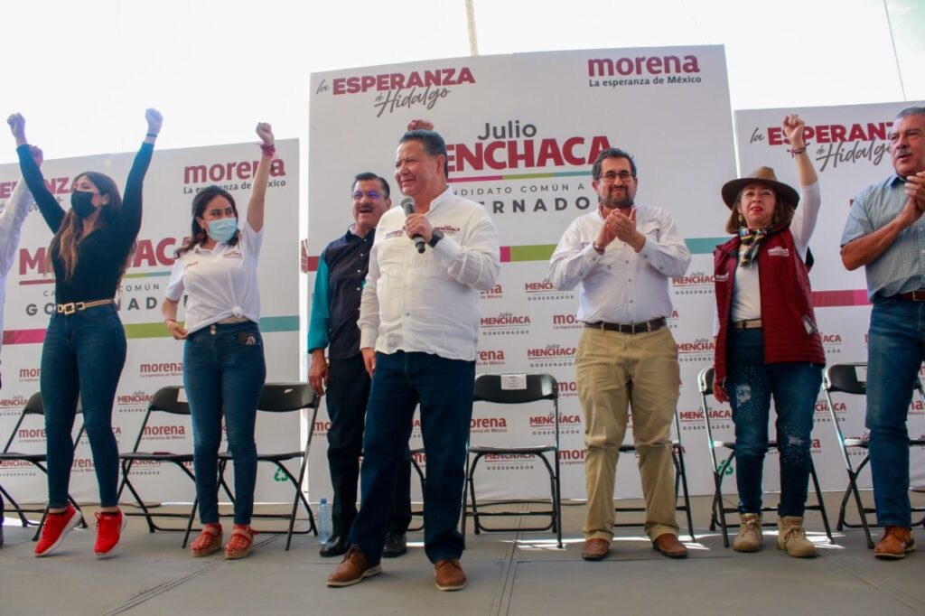 “Este día, venimos abrazando la esperanza, que en cada rincón y en cada municipio del estado, en cada comunidad exista esa conciencia de tomar en nuestras manos el presente y futuro, lo tenemos muy cercano en un ejercicio democrático y pacífico el 5 de junio, porque vamos a demostrar que las encuestas y llenar una plaza pública se traduce en la posibilidad de tener un gobierno distinto y de aterrizar en Hidalgo la Cuarta Transformación”, enfatizó Menchaca Salazar.