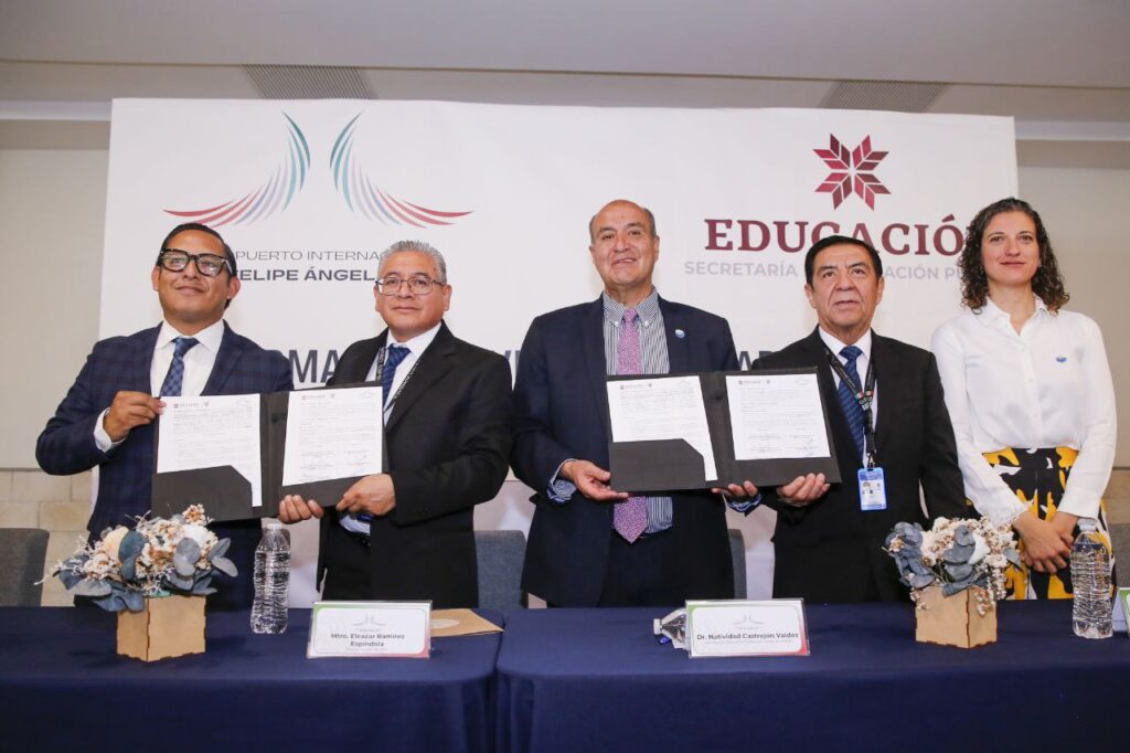 Con el objetivo de elevar la productividad e impulsar la formación, competencias y desarrollo profesional de las y los estudiantes de educación superior, la Secretaría de Educación Pública de Hidalgo (SEPH), signó un convenio de colaboración con la empresa de Participación Estatal Mayoritaria “Aeropuerto Internacional Felipe Ángeles S.A. de C.V.” (AIFA)
