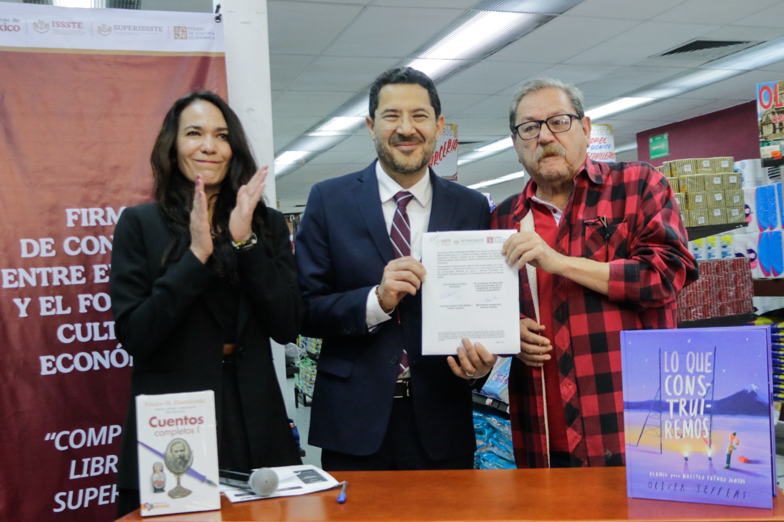 El director general del Instituto de Seguridad y Servicios Sociales de los Trabajadores del Estado (ISSSTE), Martí Batres Guadarrama, firmó la renovación del Convenio entre el ISSSTE y el Fondo de Cultura Económica (FCE), a fin de impulsar la distribución de títulos en todas las tiendas SuperISSSTE del país.