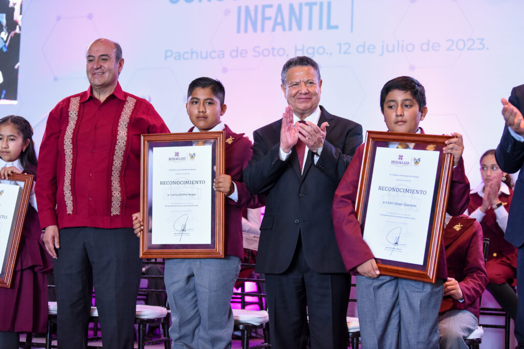 El gobernador de Hidalgo, Julio Menchaca Salazar, asistió a la premiación de las y los 32 ganadores de la Olimpiada del Conocimiento Infantil 2023, quienes se harán acreedores a una beca de 2 mil pesos mensuales en su educación secundaria durante 10 meses por ciclo escolar, estímulo que será otorgado por la Fundación BBVA, mientras que la Secretaría de Educación Pública de Hidalgo (SEPH) les entregó tabletas electrónicas para facilitar sus actividades académicas.