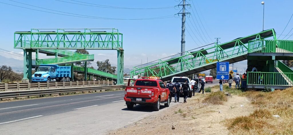 El puente peatonal ubicado a la altura del Hospital General de Tullancingo,sobre la autopista México–Tulancingo, fue derribado de forma parcial por una grúa que pasó por debajo, sin consecuencias humanas ni materiales, la mañana de este jueves.