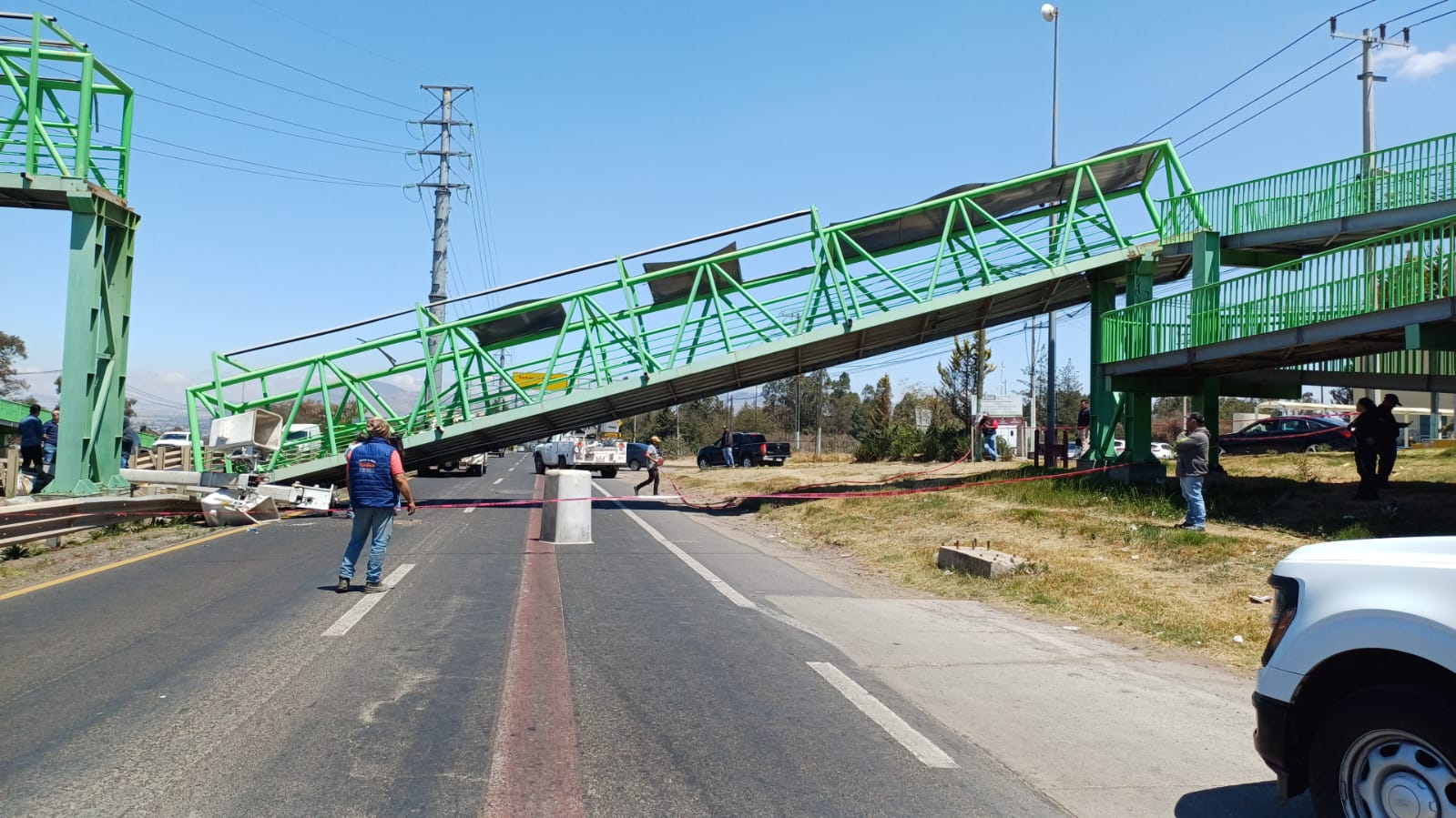 El puente peatonal ubicado a la altura del Hospital General de Tullancingo,sobre la autopista México–Tulancingo, fue derribado de forma parcial por una grúa que pasó por debajo, sin consecuencias humanas ni materiales, la mañana de este jueves.