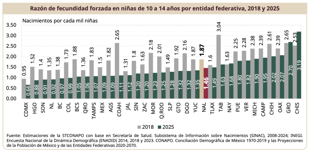 El Gobierno del Estado de Hidalgo ha logrado avances significativos en la protección y el ejercicio de los derechos de niñas y adolescentes. Durante los últimos tres años, la razón de fecundidad en niñas de 10 a 14 años disminuyó 23%, al pasar de 1.14 a 0.88 nacimientos por cada mil adolescentes. Este resultado coloca a la entidad como la segunda con mayor reducción a nivel nacional, de acuerdo con datos del Consejo Nacional de Población (Conapo).