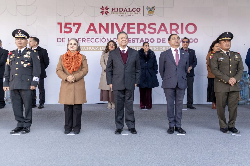 El gobernador Julio Menchaca Salazar encabezó las celebraciones por el 157 aniversario de la erección del Estado de Hidalgo, resaltando que esta conmemoración no sólo recuerda un hecho histórico, sino que reafirma el compromiso permanente de su administración con el bienestar, la seguridad y el desarrollo de las y los hidalguenses.