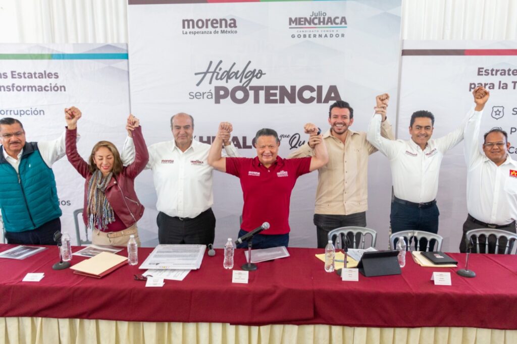 En esta conferencia de prensa, Julio Menchaca estuvo acompañado por Sandra Alicia Ordóñez Pérez, presidenta de Morena en Hidalgo; Sergio Hernández Hernández, presidente del Partido Nueva Alianza Hidalgo; Javier Vázquez Calixto, comisionado presidente del Partido del Trabajo; Eduardo Medécigo Rubio, encargado de propuestas y plan de gobierno de la campaña; Miguel Tello Vargas, coordinador de comunicación de la campaña de “Juntos Hacemos Historia”, así como Natividad Castrejón Valdez, coordinador general de los trabajos de campaña.