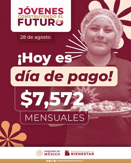 Si eres aprendiz dentro del programa Jóvenes Construyendo el Futuro, te tenemos una buena noticia: hoy recibes tu pago por 7 mil 572 pesos.