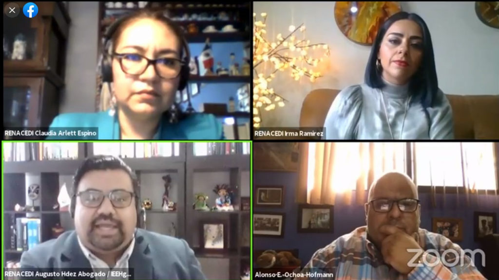 Pachuca, 5 de junio de 2020.- El Instituto Estatal Electoral de Hidalgo (IEEH) y la Red Nacional de Consejeras y Consejeros por una Democracia Incluyente (Renacedi) transmitieron la primera emisión del programa denominado “Barras de Opinión Renacedi” que se realizará todos los miércoles de 19:00 a 20:00 horas por las redes sociales de la mencionada Red.
