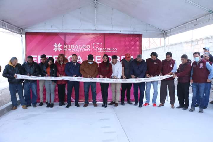 La alcaldesa de Tepeapulco, Marisol Ortega, encabezó la entrega de la construcción de pavimento hidráulico en la calle de la colonia Legaspi.