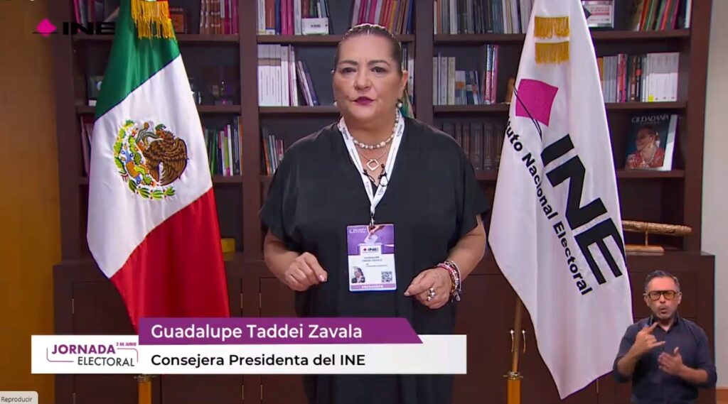 La consejera presidenta del INE, Guadalupe Taddei emitió en mensaje en el que señaló que los trabajos de vecinos y vecinas es para garantizar la transparencia en los resultados. Señaló que a las 8 de la noche comenzará la publicación de resultados del PREP con las actas que se reciben de cada una de las casillas.