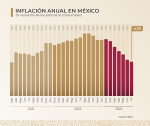 “Tenemos una muy buena noticia: sigue bajando la inflación, esto repercute mucho en favor de la economía popular, la economía de las familias porque el ingreso alcanza para más”, resaltó el presidente Andrés Manuel López Obrador.