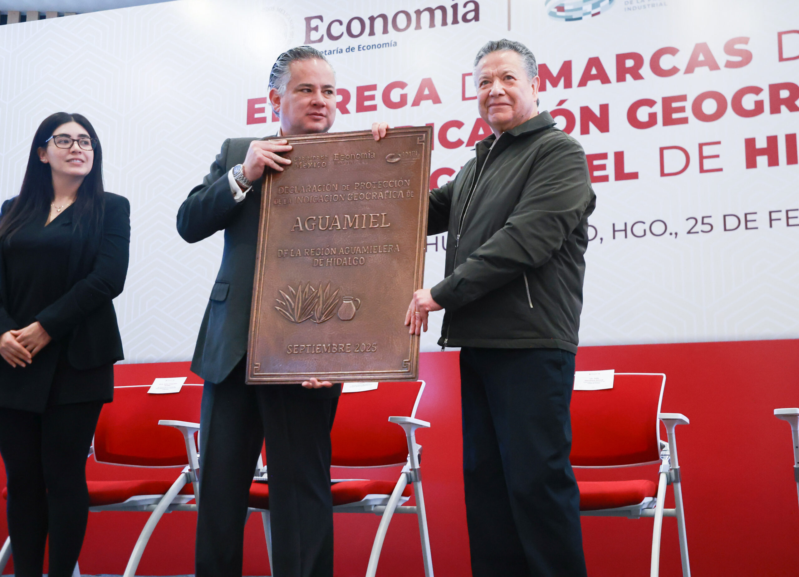 Con el propósito de salvaguardar el patrimonio productivo y comercial de Hidalgo, el gobernador Julio Menchaca Salazar recibió la declaratoria de protección de la Indicación Geográfica (IG) del Aguamiel de la Región Aguamielera del estado por parte del Instituto Mexicano de la Propiedad Industrial (IMPI) y acompañó la entrega de Marcas del Bienestar a personas emprendedoras y empresarias hidalguenses.