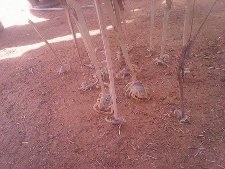 Abu al Maati explicó que los escorpiones y las serpientes viven en las montañas y se esconden bajo tierra por las altas temperaturas, pero el agua de la lluvia los arrastra y, cuando se seca, vuelven otra vez a sus madrigueras.