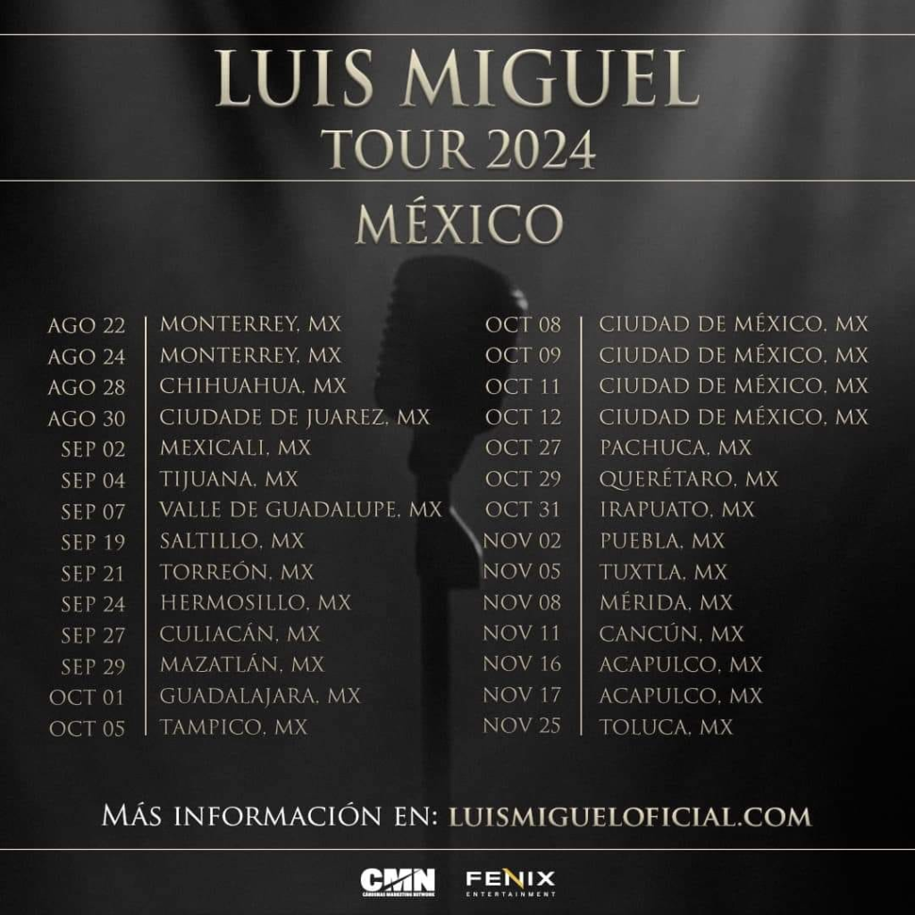 A través de sus redes sociales oficiales, Luis Miguel dio a conocer las fechas de su tour 2024 y reveló que el 27 de octubre se presentará en la Bella Airosa, aunque no mencionó en qué recinto será su concierto.