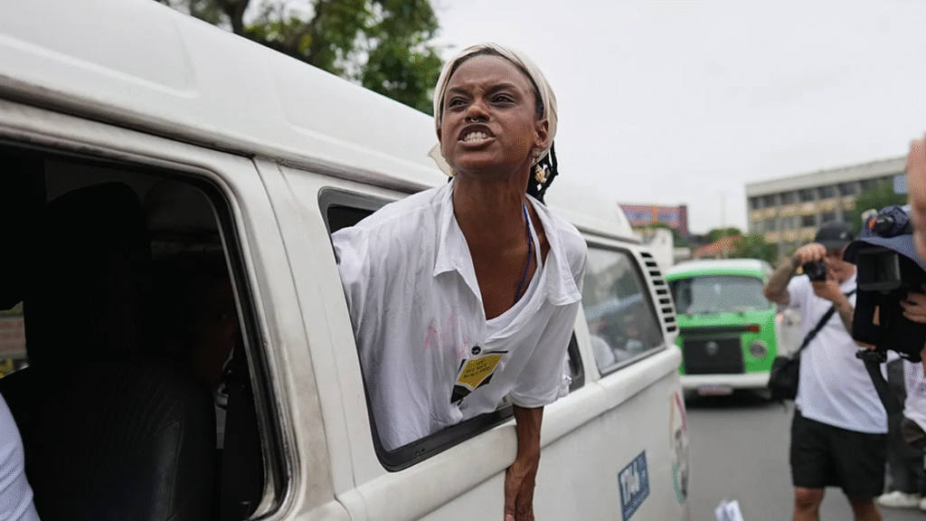«¡Cobarde, terrorista, asesino! Tiene las manos sucias de sangre», dijo Anne Caroline dos Santos, de 30 años, refiriéndose al gobernador Castro, aliado del expresidente Jair Bolsonaro y opositor al presidente Lula da Silva.
