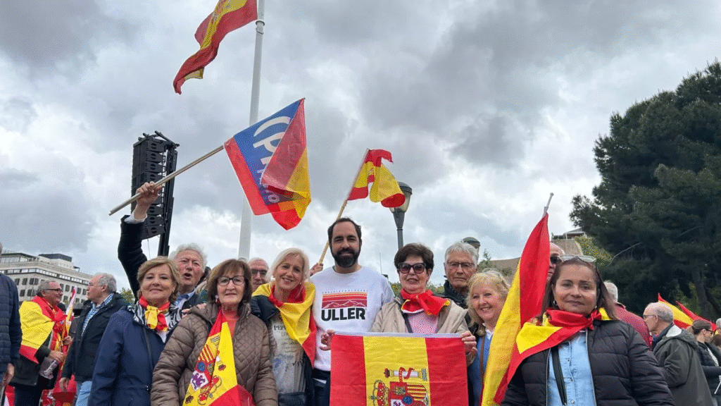 La manifestación, organizada por diversas asociaciones civiles, contó con el respaldo de importantes fuerzas políticas de la oposición. El ambiente se caracterizó por la presencia masiva de banderas españolas y pancartas críticas hacia el Gobierno, el PSOE y varios ministros del gabinete actual.