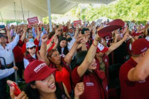 Por su parte, el coordinador general de campaña, Natividad Castrejón, invitó a los y las presentes a seguir tocando puertas, “porque están construyendo un camino democrático, están construyendo un proyecto que, dentro de 20 años, cuando se hable de la historia de su estado van a decir: allá por el año 2022 comenzamos una utopía, sacando del poder a un gobierno de 92 años con un partido único, rebelándonos, diciendo ¡basta!”.
