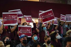«Los del otro lado, los adversarios políticos, están muy preocupados. Miren. Véanlos en los eventos. ¿A alguien se le obligó a venir al mitin? Vean a sus vecinos y vecinas, hay ánimo, hay entusiasmo. Vean los mítines y las reuniones de allá enfrente, de los adversarios, vean las caras, parece que van a un funeral y, efectivamente, están yendo a un funeral”, comentó.