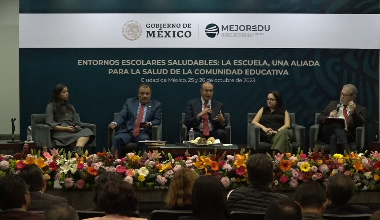 El secretario de Educación Pública de Hidalgo (SEPH) Natividad Castrejón Valdez participó en el conversatorio «Entornos escolares saludables: la escuela, una aliada para la salud», organizado por la Comisión Nacional para la Mejora Continúa de la Educación (MEJOREDU).
